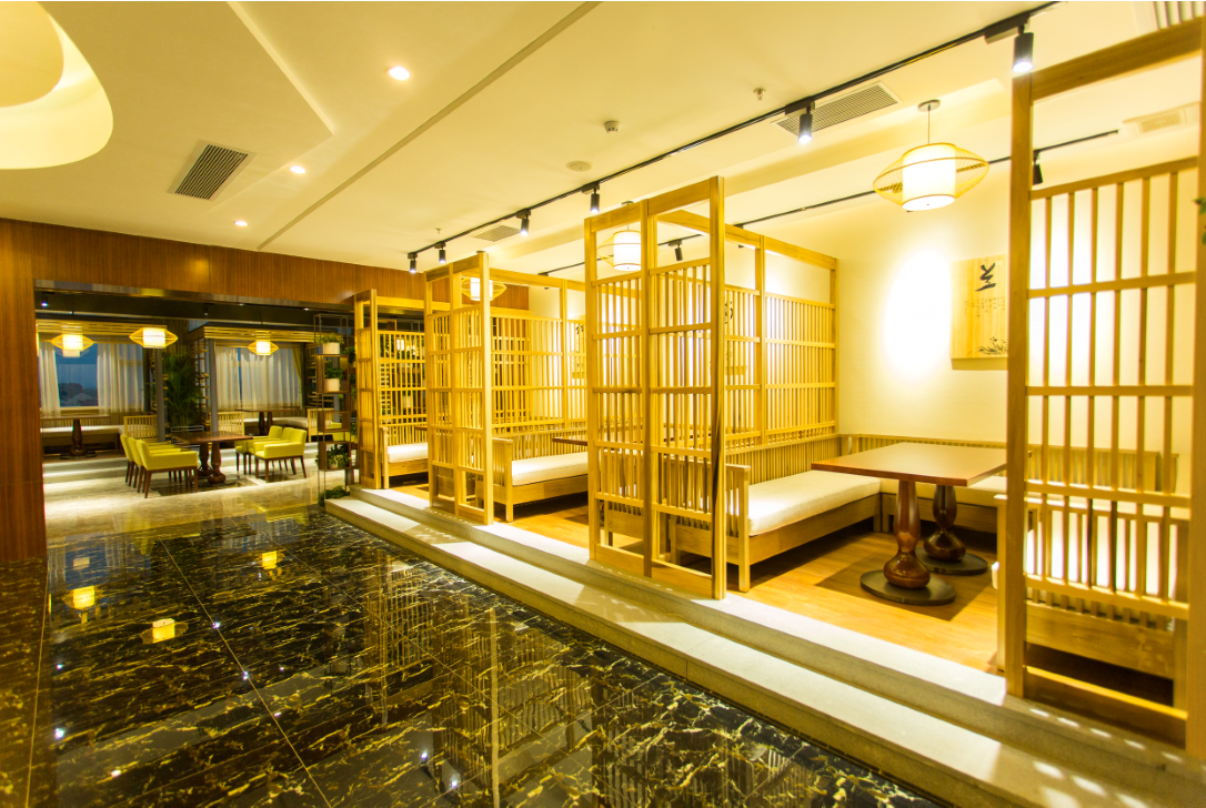 海瀛風(fēng)味餐廳內(nèi)以暖黃色調(diào)的燈光“彌漫”在空氣中,仿佛讓時(shí)光倒流到了那個(gè)浪漫傳奇的年華。觥籌交錯(cuò),推杯換盞。
